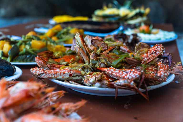 Land and Sea to Table. Enjoy fresh seafood caught by local fishermen, and vegetables harvested on the islands by locals. All served sustainably by our awesome chef. Learn how to cook in our open air kitchens too!